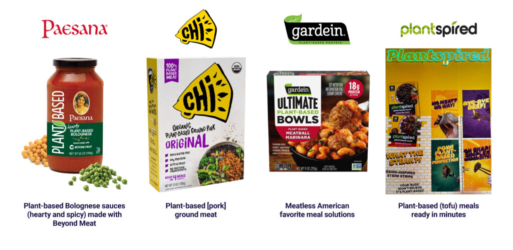 Examples of companies present and offering plant-based alternatives included Paesana, Chi, Gardein and Plantspired.