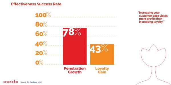Secondly, there is a common misconception among marketers who believe that retaining an existing consumer will bring more value than recruiting a new one. Based upon our research, we have actually discovered the opposite to be true. By increasing your customer base, Brand Penetration will deliver a much higher return than Frequency.