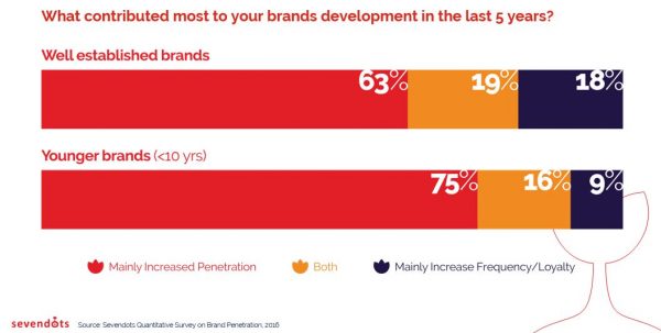 Yet, given the findings from our study, as highlighted in the chart below, we have in fact discovered that Brand Penetration is equally important throughout the entire life cycle of a brand – with only a marginal difference between the younger and the more mature brands.