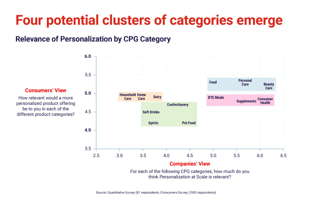 Bringing together the perspectives of brand owners and consumers on how different categories may be ripe for personalization, four distinct clusters emerge: